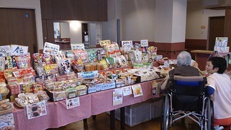 特養では、月に一度、出張お菓子やさんが来てくれました。 今まで、自分たちで駄菓子を買ってきて『駄菓子レク』がグレードアップ↑しました(^^) たくさんのお菓子!利用者さんも迷っておられ、ビニール袋一杯買っていかれてました。