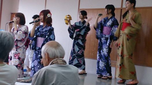 7月30日、地域の老人クラブ『寿楽会』の納涼祭に、祥雲館音楽ユニット音輪♪が出演させて頂きました。 音輪〜音楽でつなげる地域の輪〜 第一段として、主に今年の新人スタッフでユニットを結成し、歌と演奏で地域の皆様と一緒に音楽を楽しみました(^^) 仕事の合間、仕事が終わってから、先輩方の指導を受けながら、頑張ったかいがあり、とても良いステージになりました。(自称大成功!) 出演したみんなも、良い経験になりました! 次回、どんな形で音輪がステージに立てるのか…楽しみです(^o^)(^-^) 乞う、ご期待下さいm(__)m