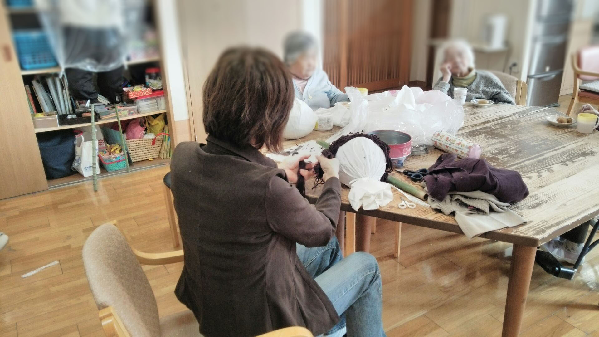 10月10日、「のせでんアートライン2015」が始まりました。 祥雲館でも、かかし作りに挑戦しています。ボランティア方々と利用者さん、スタッフの協働作品です。 祥雲館かかし 第1号・・・ グループホームのかかし=ボランティアさんがお手伝いに来てくださり、案山子作りをしました。 雨対策もバッチリです。皆様グルホ横フェンスまでみに来て下さいね〜