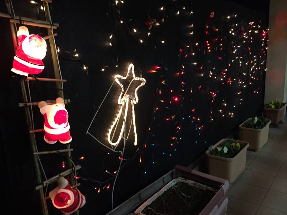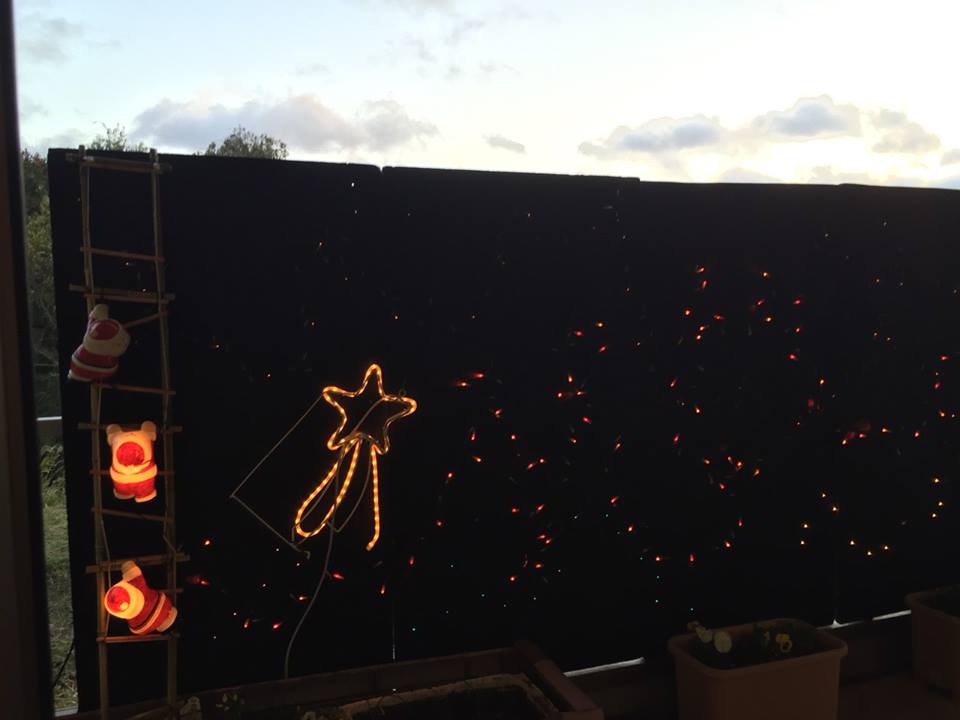 利用者さんと黒いパネルを取り付け、サンタさんや電気を飾り大奮闘(^○^)