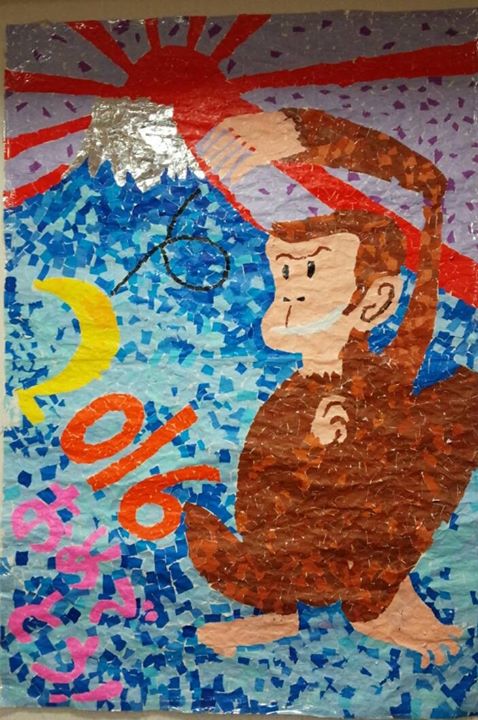 年末 利用者様と職員で談話室に集まり作り上げた 申の貼り絵です\(^_^)/