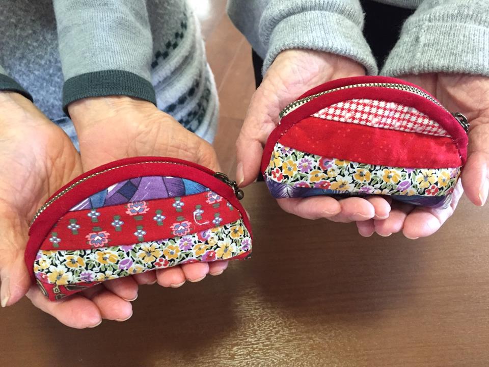初めての作品は、パッチワークのポーチ。 ちくちく針を動かし、布を縫い合わせ、ファスナーをつけてできあがり! できた時にパッとうれしそうな顔をされ、それから何回もポーチを見て、自分で作ったうれしさをかみしめておられました。 サポーターさんのおかげでまたひとつ宝物が増えました(^^)