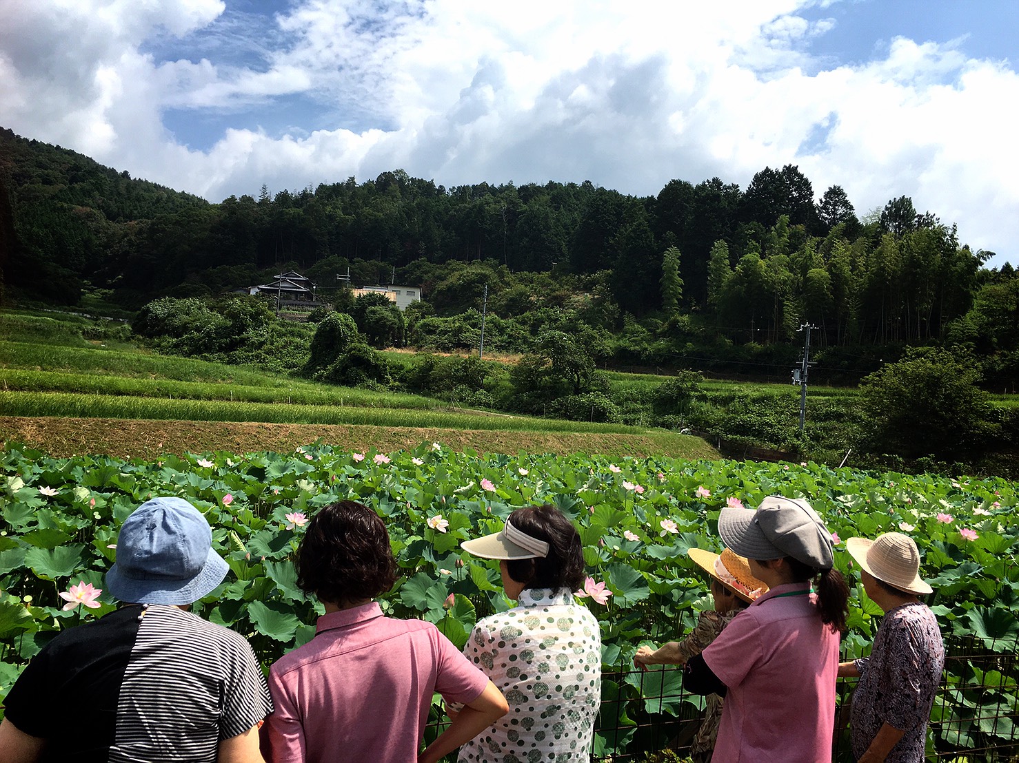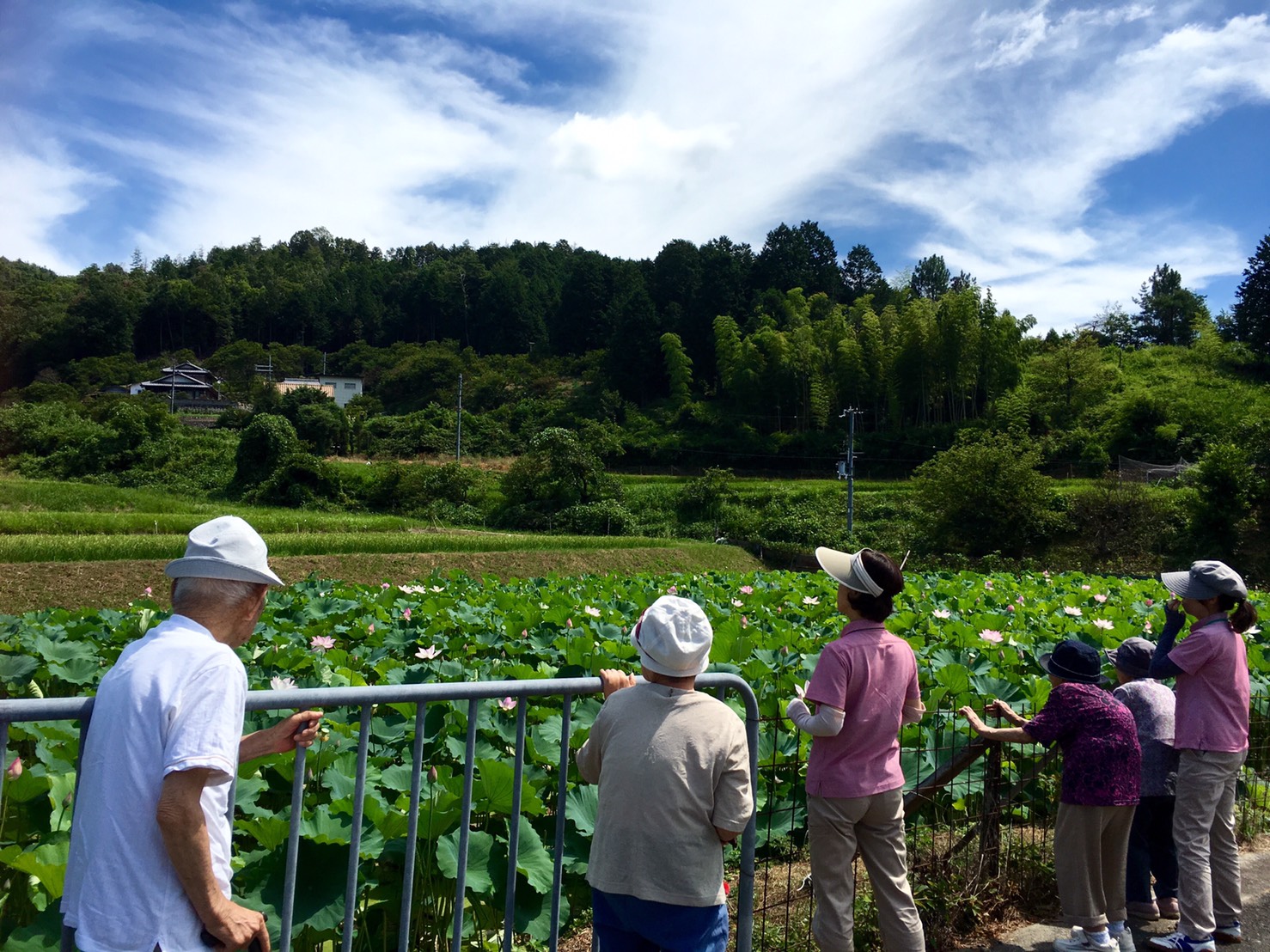 今年も、蓮を見たいというリクエストにお応えし、能勢にある蓮畑に出かけました。 汚れた泥の中から伸びているのに、この世のものとは思えない美しい花を咲かせるハスの花は、まさに俗世を越えた存在として、昔から貴ばれていたそうです。 色鮮やかなピンクの大輪が咲く様子は、お釈迦様の台座がたくさん並んでいるよう。そんな光景に感嘆の声。 『いいところ、連れてきてもらった〜』 と初めての方も、毎年来ている方にも喜んでいただけました(^^) 暑い日が続きます。 皆さま、ご自愛下さい。