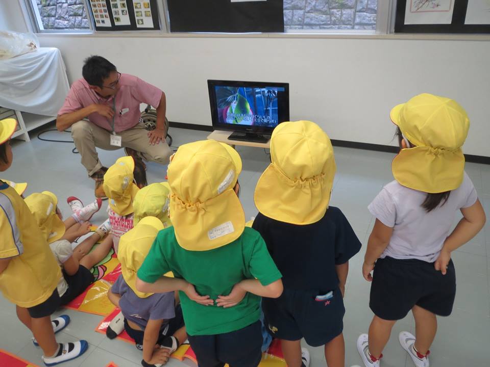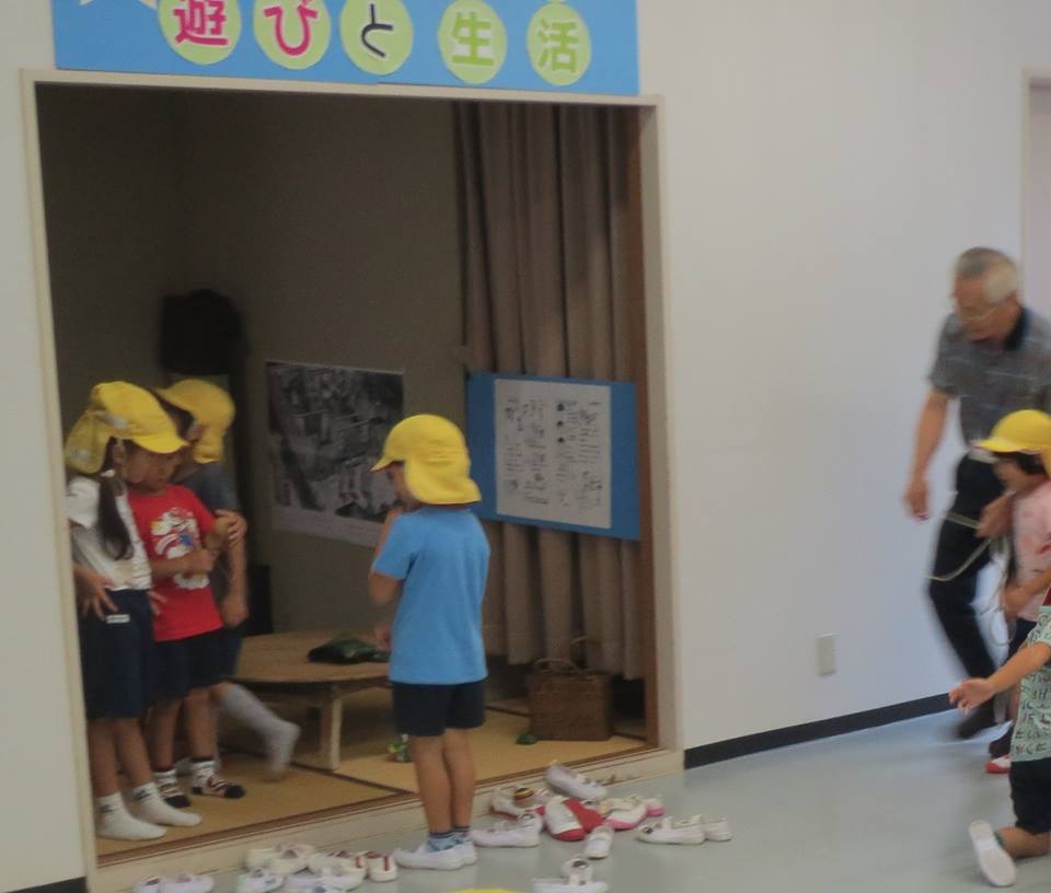 ひかり幼稚園来館 9月13日(火) 9月4日の森のカーニバル開催するにあたり、メダカと鈴虫を分けていただいた地域の幼稚園「ひかり幼稚園」の園児さん35名が遊びにきてくれました。 園児さん達は、森のカーニバル「豊悠アクアリウムin吉川」のブースで、ボランティア野方々と一緒に、国宝オオムラサキの映像や昔の遊び(コマまわし・けん玉など)を体験したり、吉川の民話のお話を聞いたりと、大変にぎやかに過ごしました。 ありがとうございました。