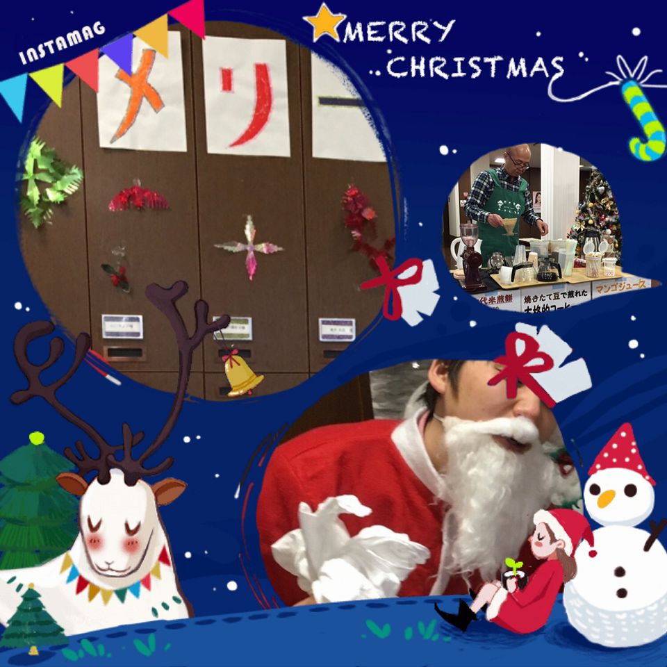 おやつの時間に、クリスマス会。 地元のコーヒーショップ『コーヒーロースト』のオーナーさんにも来てもらい、美味しいコーヒーを香りの味わいで楽しみました。 そして…サンタクロースも遊びにきてくれました