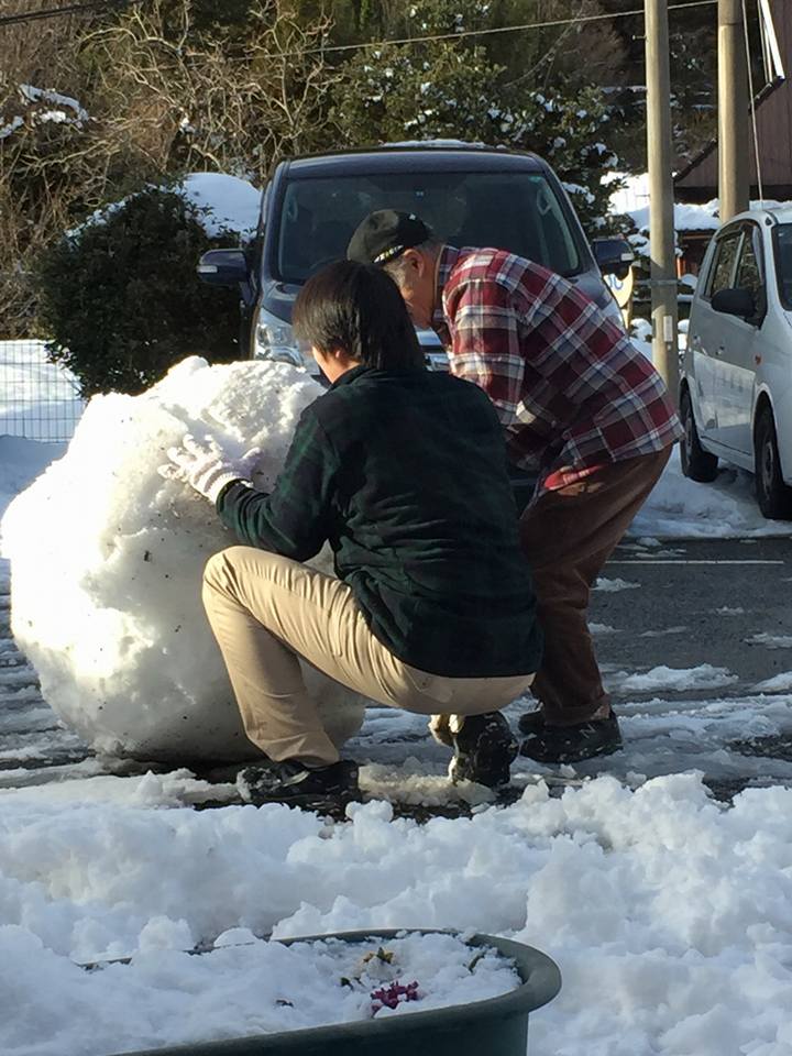 デイサービスセンターあじさいです。 週末からの大雪に誘われて 外にでてみたら・・・ 思わず童心にかえってました。 大きな雪だるまを作った二人 ご満悦です。