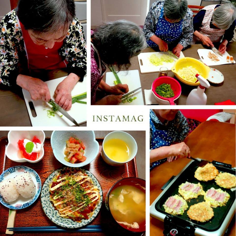 毎月おやつレクを実施していますが、今月は昼食作りに挑戦しました(^^) 包丁なんてずっと握っていないという大正生まれの方も、 食材を前にするとカラダが覚えているんですね! 皆さん、とても上手でびっくりしました。 トントントン…リズムの良い音が、すみれに響いていましたよ。 みんなで作ったお好み焼きは特別の味♡とても美味しくいただきました。 今度は何を作ろうかな??