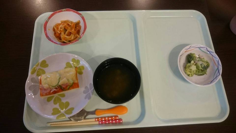 〜月に一度の昼食作り(もみじユニット)〜 もみじユニットは、ピザトースト食べ放題! ピザトーストを珍しそうに食べていました(^-^)