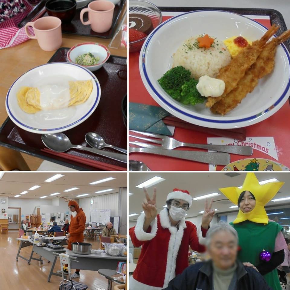 12/23〜25 クリスマスイベントを行いました。 この日のお昼ご飯は、 『エビフライプレート』 『オムライスホワイトソースかけ』など いつもとは違った1日でした