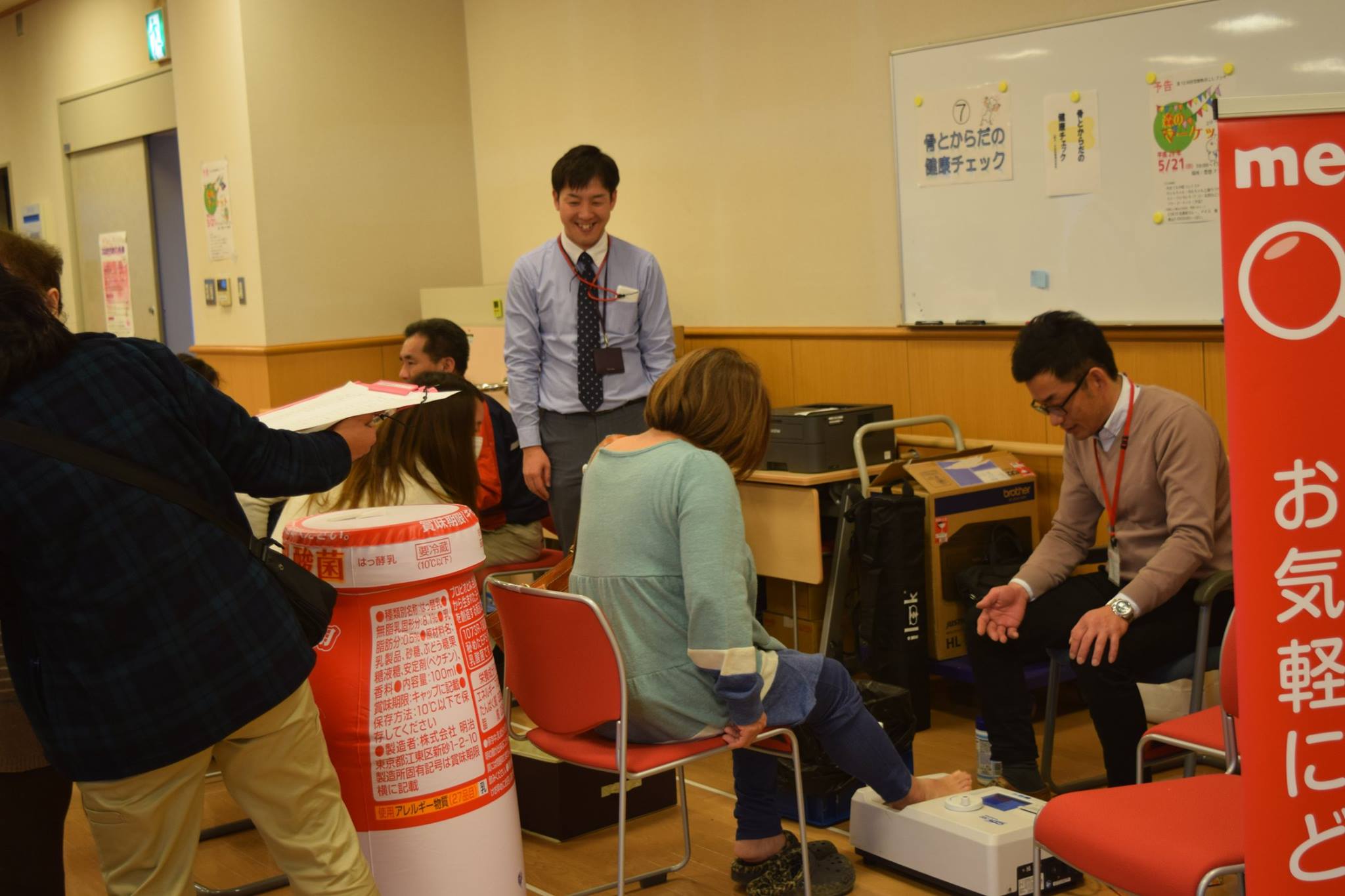出店コーナーの紹介† 〜骨の健康チェック〜 前回、とても好評だった骨の健康チェック。今年も来ていただきました。 骨の状態を測定し、健康は骨づくりのアドバイスをしていただけます。 体験された方には、おすすめの飲料がもらえます。 今回は、スタッフを増やし、皆様のお越しをお待ちしております。 ♯協力♯大出乳販株式会社