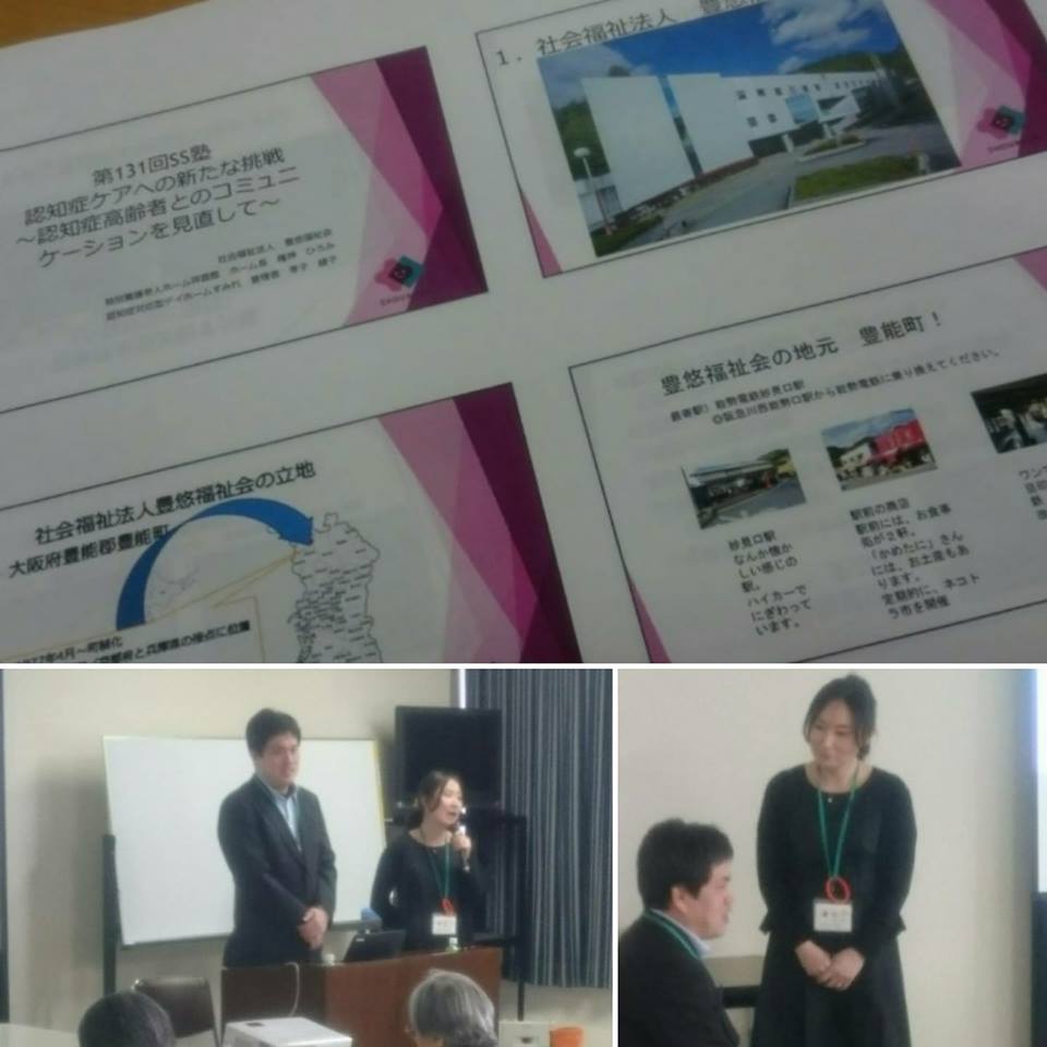 第131回SS塾 認知症ケアのあらたな挑戦 〜認知症ケアのコミュニケーションを見直して〜 堺市で開催されている「SS塾」で認知症ケアについての講演のご依頼をいただき、参加させていただきました。 約30名の方が参加されていて、1時間30分のお時間をいただき、豊能町の紹介や、施設の紹介や取り組み、認知症ケア(バリデーション)の取り組み、そして、地域まるごとバリデーションの実践と、地域との繋がりなど、今、私たちが実践している認知症への取り組みをお話させていただきました。 説明はあまり上手とは言えませんでしたが、皆さんの聞いてくださる表情、ありがたかったです。 貴重な機会をいただきありがとうございました(^-^) #豊悠福祉会#祥雲館#認知症#バリデーション#堺市#SS塾#講演#貴重な機会#地域と認知症#地域まるごと#
