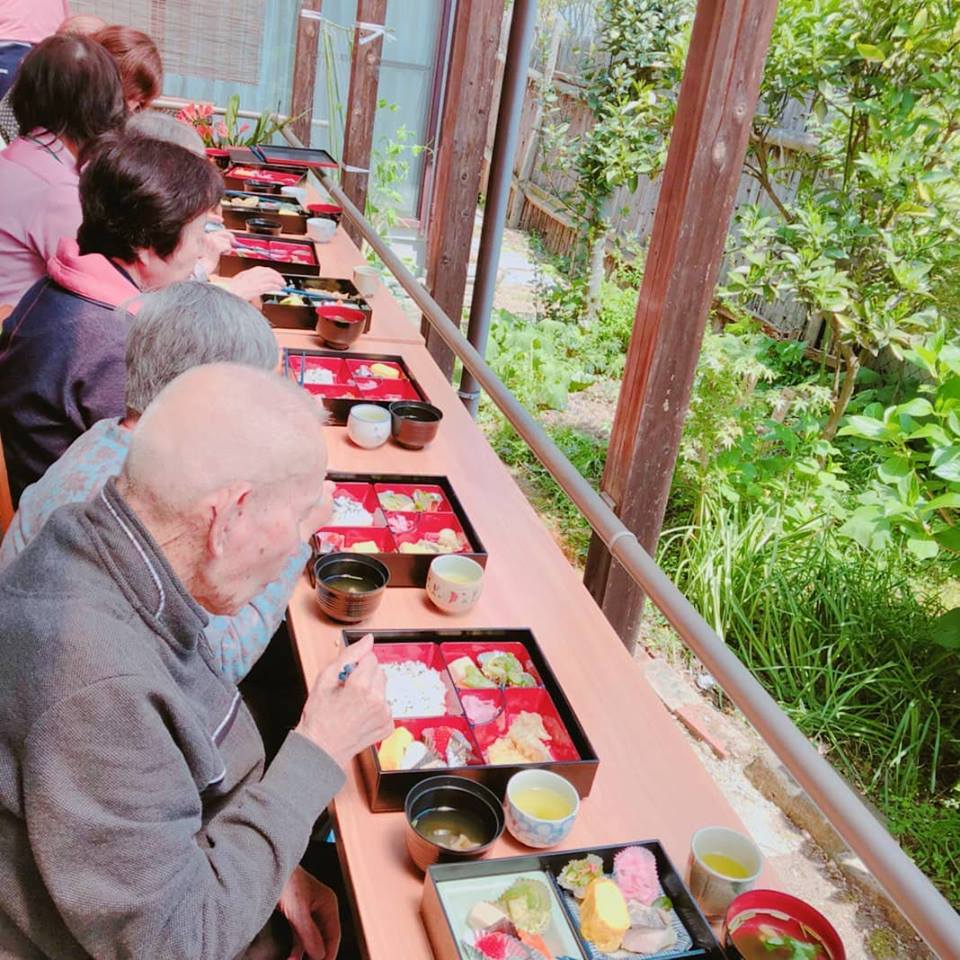 春の行楽弁当 調理員さんの作っていただいたお料理をお弁当に詰めたらいつもと違う雰囲気。 お天気もいいし、 そうだ、庭で食べよう! という事で、 まだ小さな野菜の苗や新緑に囲まれて、昼食を楽しみました。 料亭へ出かけたみたいでしょう?笑 #デイホームすみれ#豊悠福祉会#祥雲館#行楽弁当#お庭でランチ#料亭みたい#美味しかった