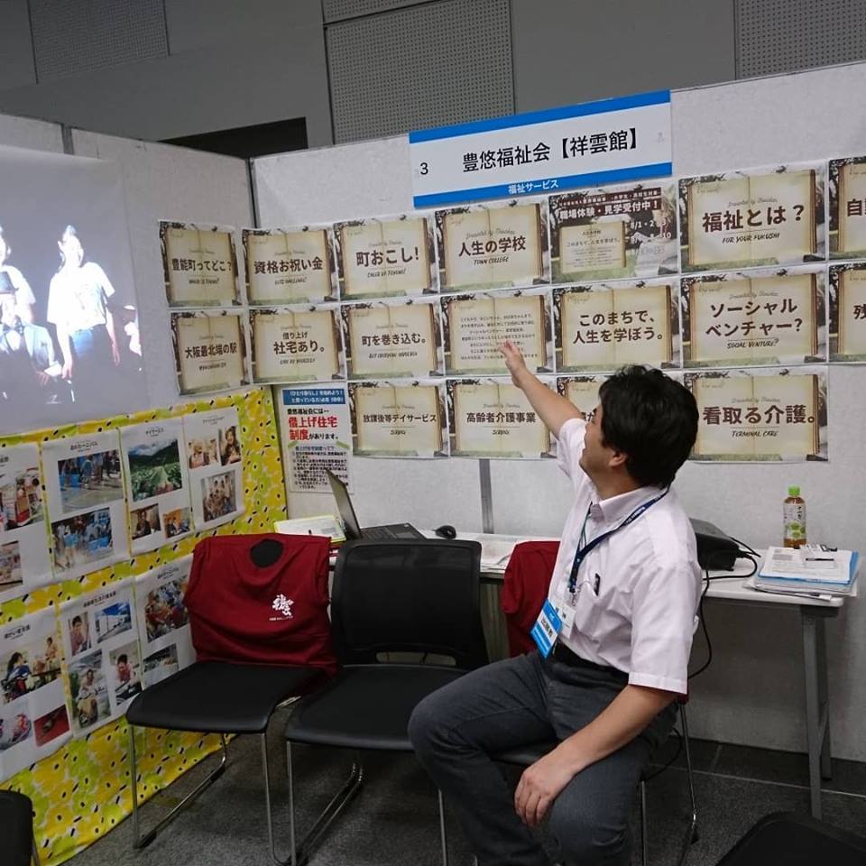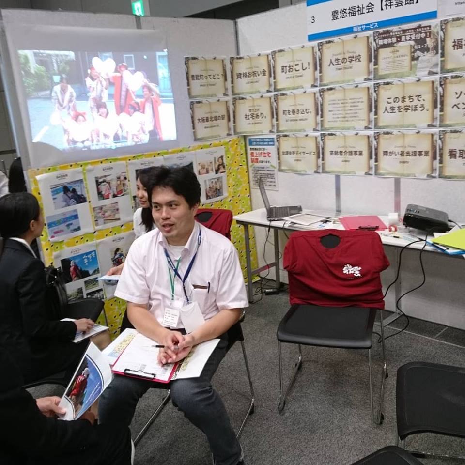 マイナビ就職セミナー大阪会場inハービス大阪 『百聞は一見に如かず』 今回、初めて一般企業参画の合同会社説明会に参加しました。 色々な分野の企業に興味のある学生の皆さんとお話することができ、有意義な時間となりました。 これからの福祉の現場では、福祉の知識だけでなく、幅広い分野の知識を持った人材が必要となります。 今日の合同説明会が、一人でも多くの学生さんに、福祉の仕事の魅力をお伝えすることができたと思います。 #マイナビ2019#マイナビ就職セミナー大阪会場#7/16#豊悠福祉会 #祥雲館#豊能町#ソーシャルベンチャー#イノベーション#インターンシップ #町おこしイベント #森#豊能町吉川#地域創生#シティプロモーション#未経験歓迎#魅力発信#高齢者介護#障がい者支援#新規事業計画