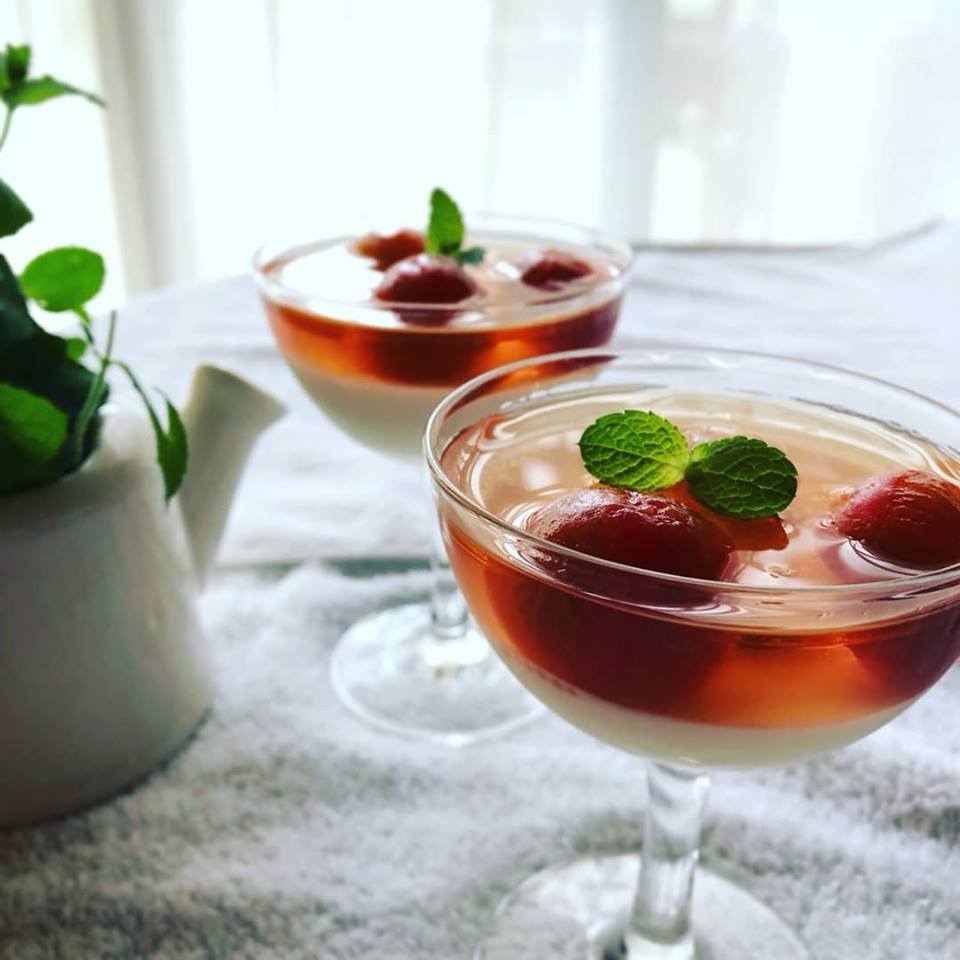 すみれの家庭菜園で採れたミニトマトで、冷たいデザートを作りました。 牛乳寒天の上のゼリーの中にはちみつシロップ漬けしたミニトマトを乗せて、 ワイングラスでカンパーイ💕 好評でした😊 #トマト#デザート#寒天ゼリー#家庭菜園#オシャレ#高齢者介護#豊悠福祉会#祥雲館#デイホームすみれ#