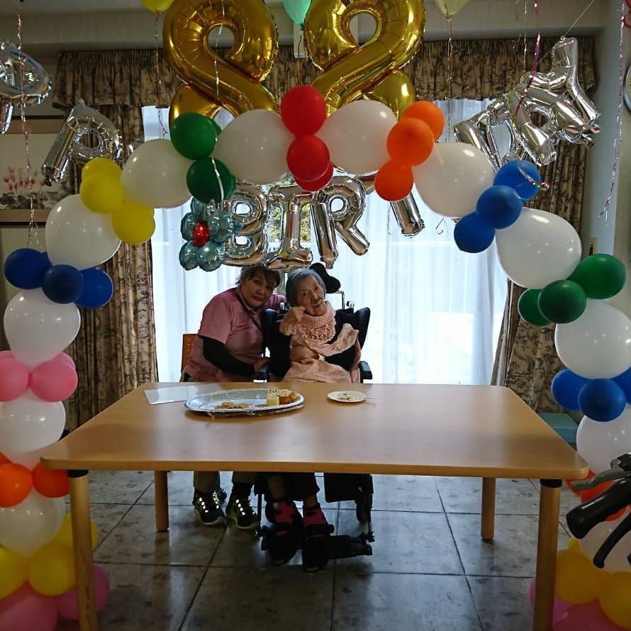 お誕生日会 祥雲館に入所の利用者さんの88歳のお誕生日会を行いました! 今回の装飾のイチオシは、 住宅展示場でよく見かける風船アーチ♥️ その上の“ 88 ”が、ポイント。 クオリティ高!