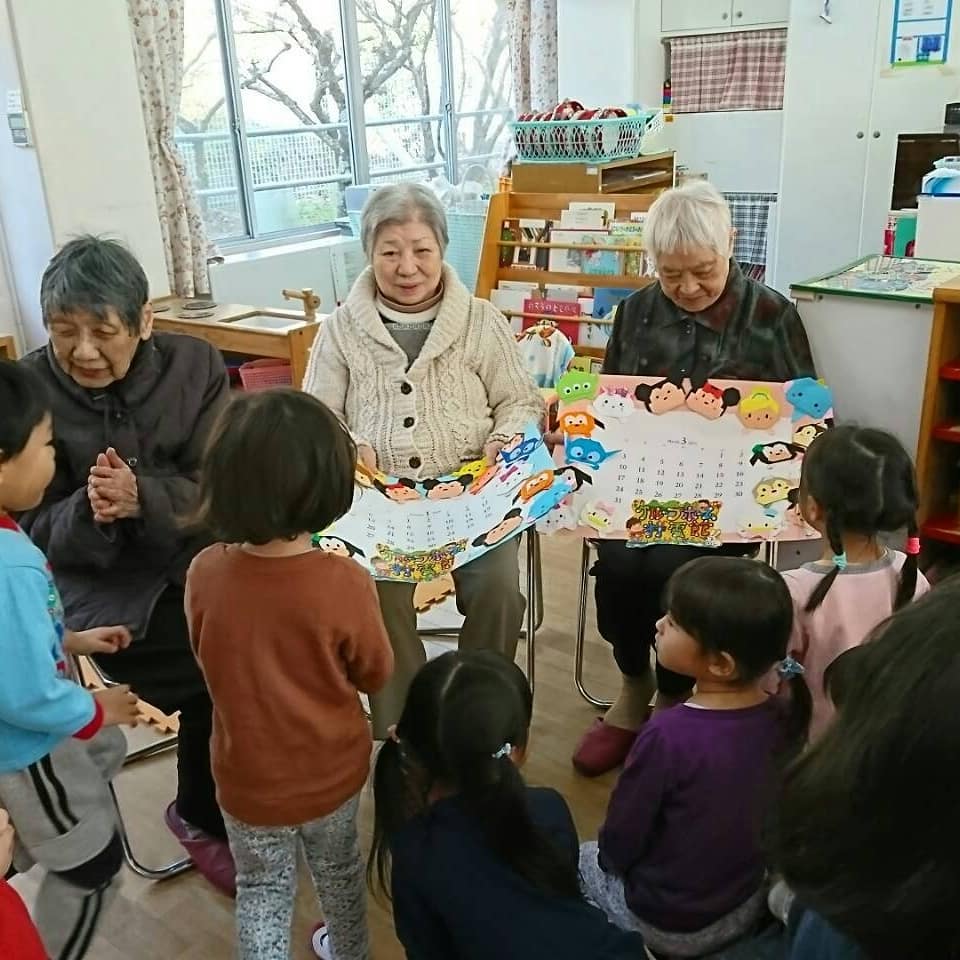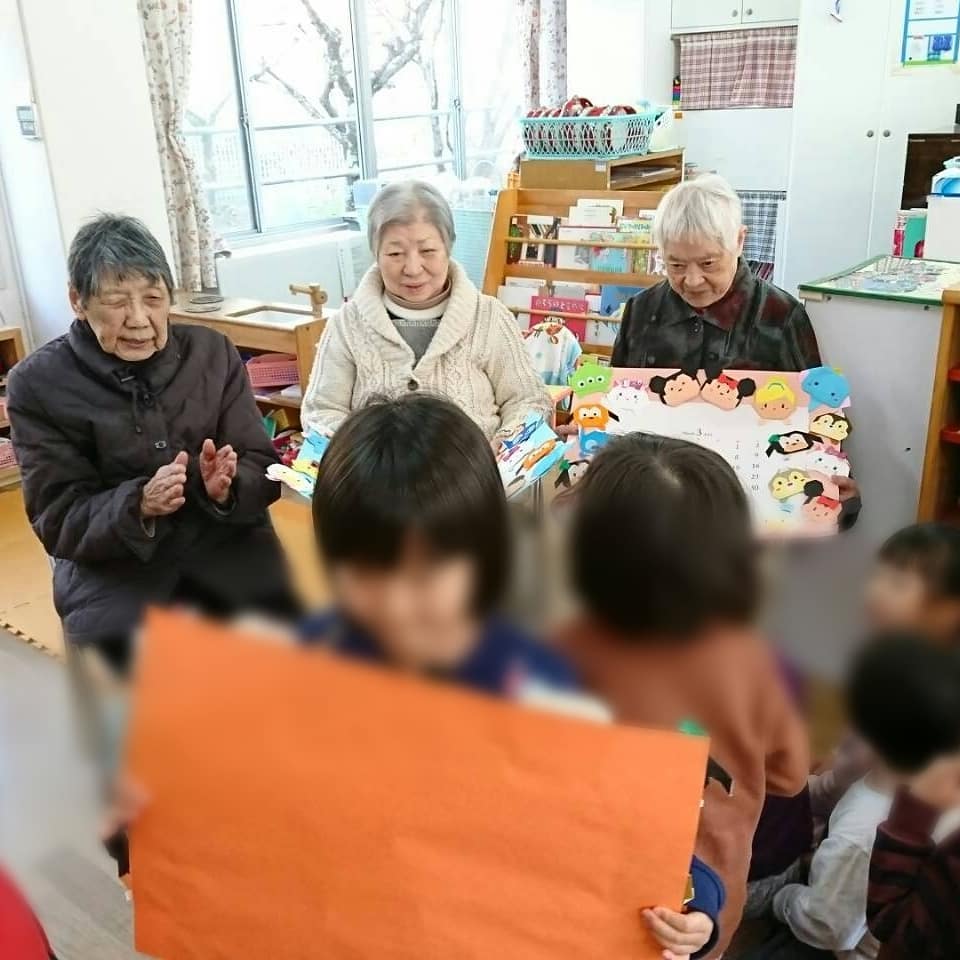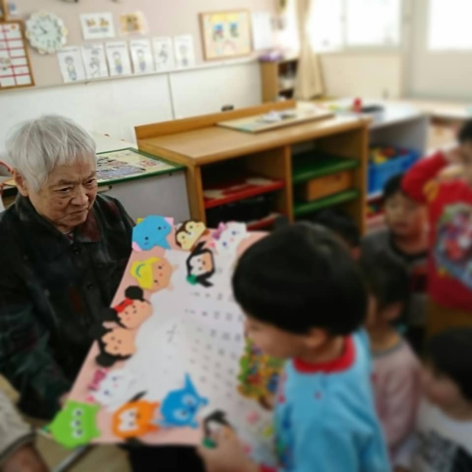 12月25日、吉川保育所に行き、子供たちとの触れ合いを楽しんで来ました。 子供たちの小さな手で肩をマッサージしてくれたり、 中学生の演奏を一緒に聴きました。 楽しいひとときを過ごしました。 最後に、グループホームの利用者さんと一緒に作った『ディズニーのツムツムカレンダー』を、子供たちにプレゼントしました❗ 「ツムツムやーー」 「アリスやーー」 と喜んでる子供たちをみて、 一生懸命作って良かった〜と利用者さんも喜ばれておりました🎵