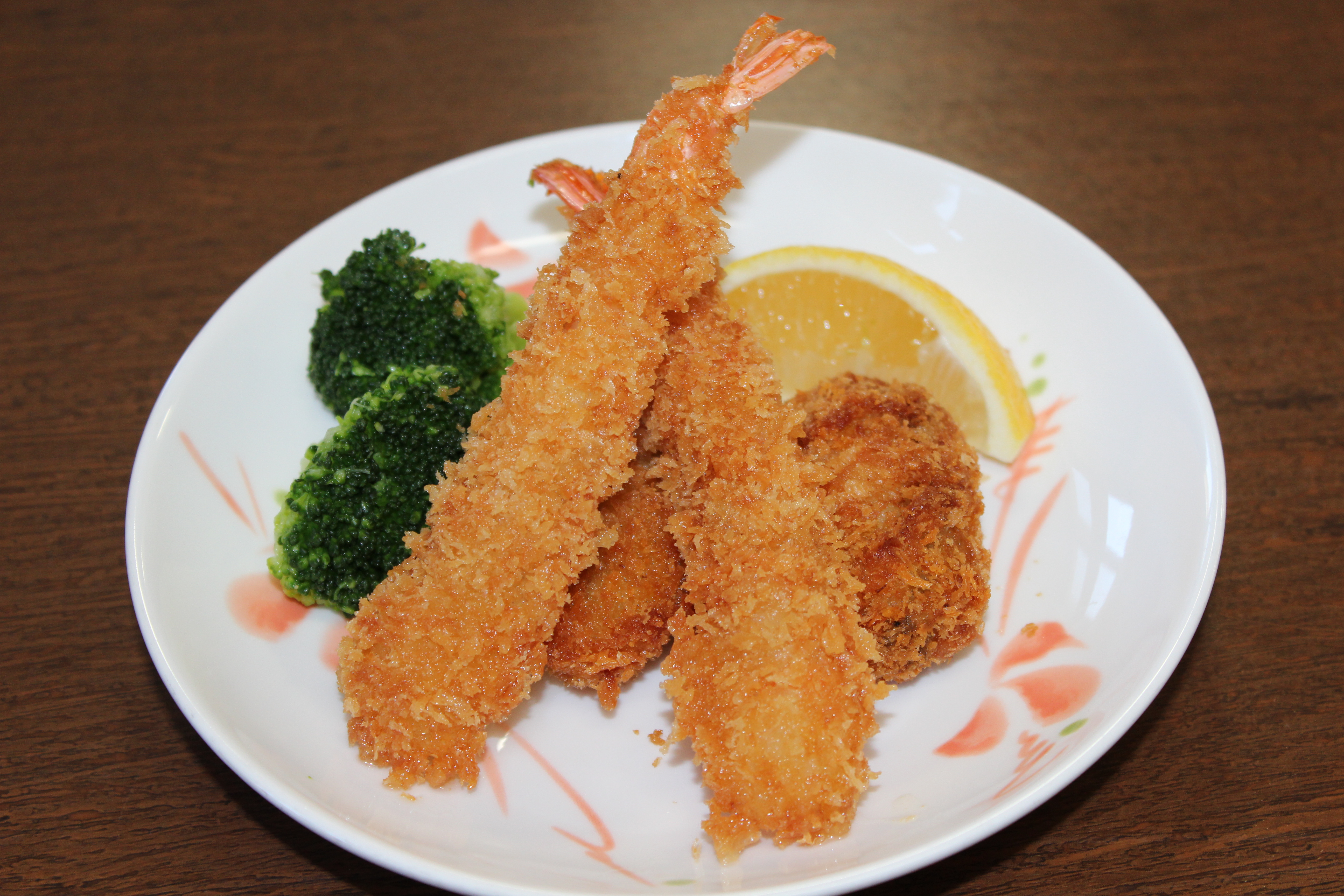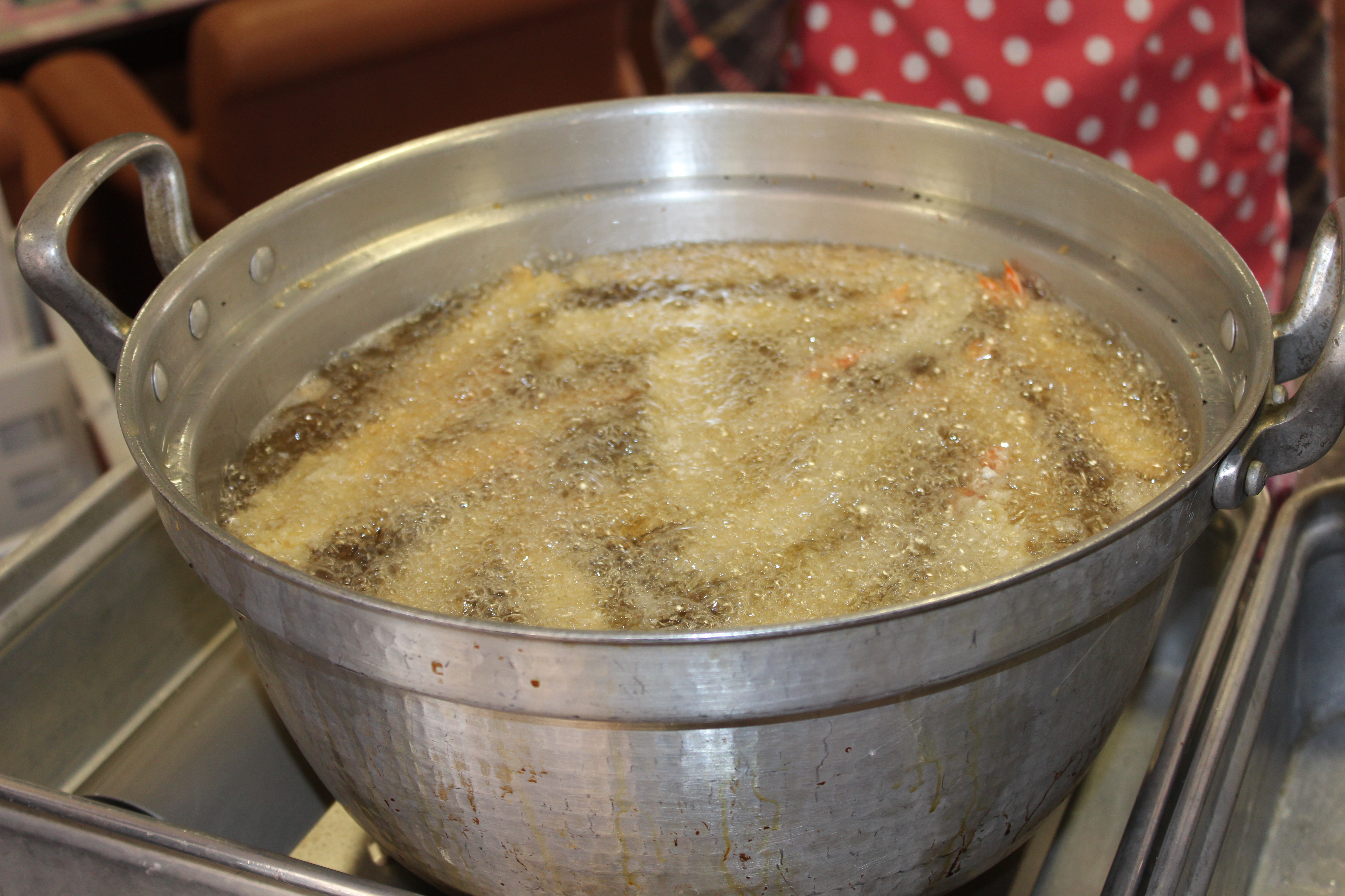 新館のお昼ご飯に目の前でエビフライとカキフライを揚げていただきました。 ソースとタルタルソース選んでいただき召し上がっていただきました。 美味しいと好評でした。