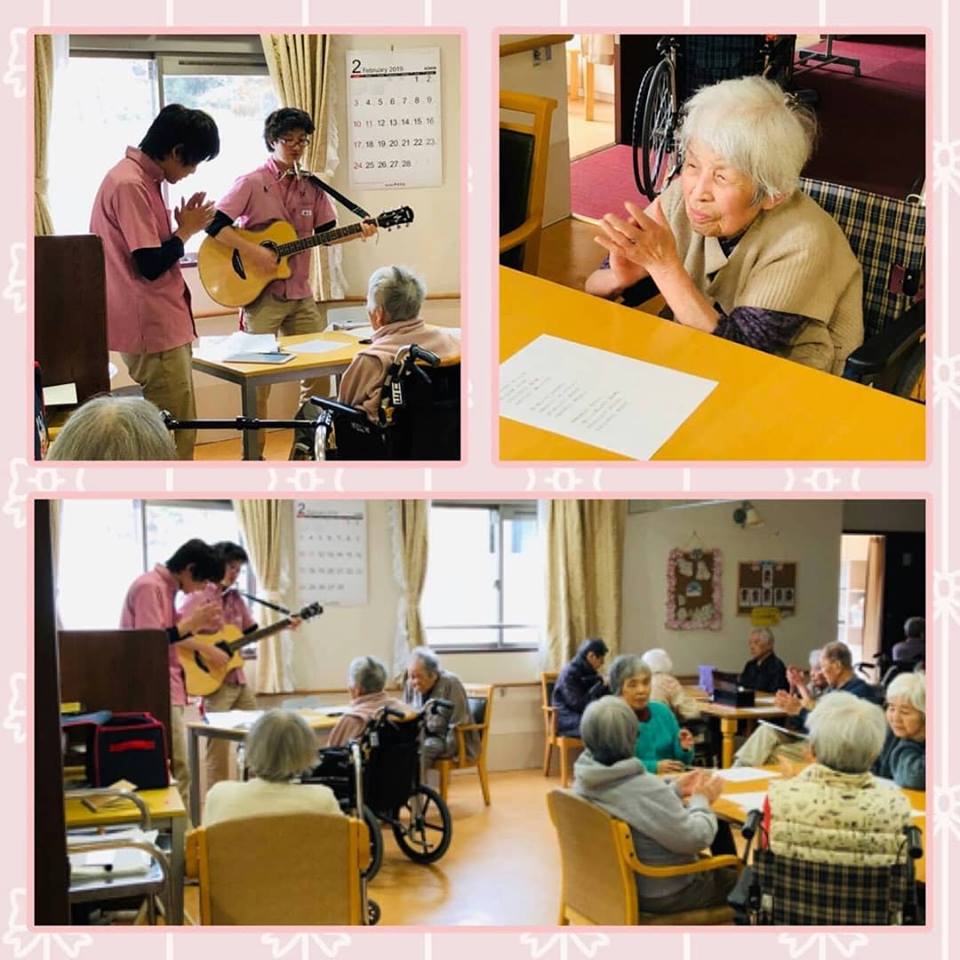 グループホーム祥雲館です。 バレンタインミニコンサートを行いました。 職員の奏でるギターと笛を伴奏に、懐かしい曲をみんなで合唱しました。 とっても楽しい時間となりました。 利用者さんも「大きな声で歌えて、楽しかったよ」と、満喫された様子。 次回はひな祭りコンサート?ですね(笑笑)