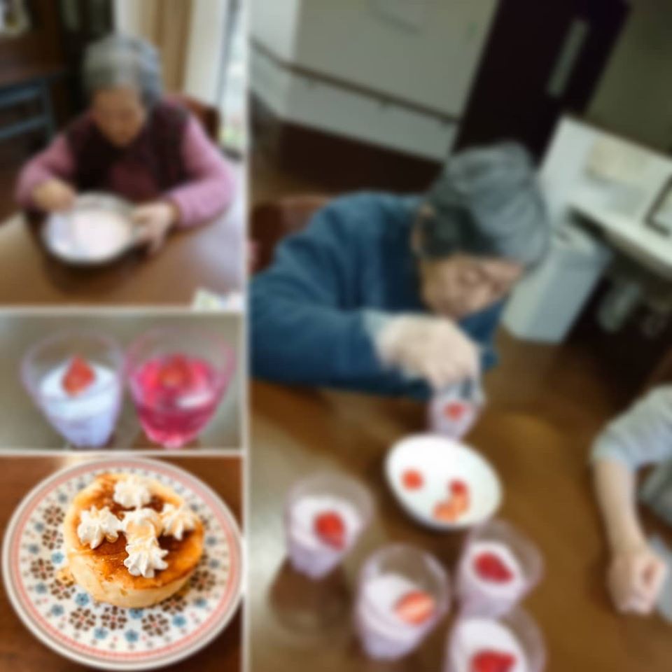 3月の料理男子 先月のショートステイのおやつの投稿、忘れていました お馴染みの介護男子ならぬ、料理男子プロデュースで#フルーチェと#ゼリー作りをしました。 利用者の皆さんにも手伝っていただき、料理(おやつ作り)をしている時の顔は主婦の顔になりますね^^ 牛乳がダメな利用者さんの為にゼリーも作りました。 両方食べたいという方もいて、皆さん