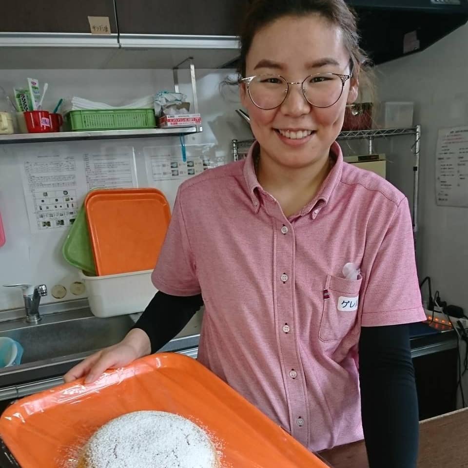 今回はモンゴル出身のゲレルさんが作ってくれました。 炊飯器で作るケーキを 初めて1人で作ったそうですが完璧でした。 利用者さんも喜んできれいに食べていました。 いつかモンゴルのおやつを作ってくれるかも!? ゲレルさんが作るおやつ、次回もお楽しみに
