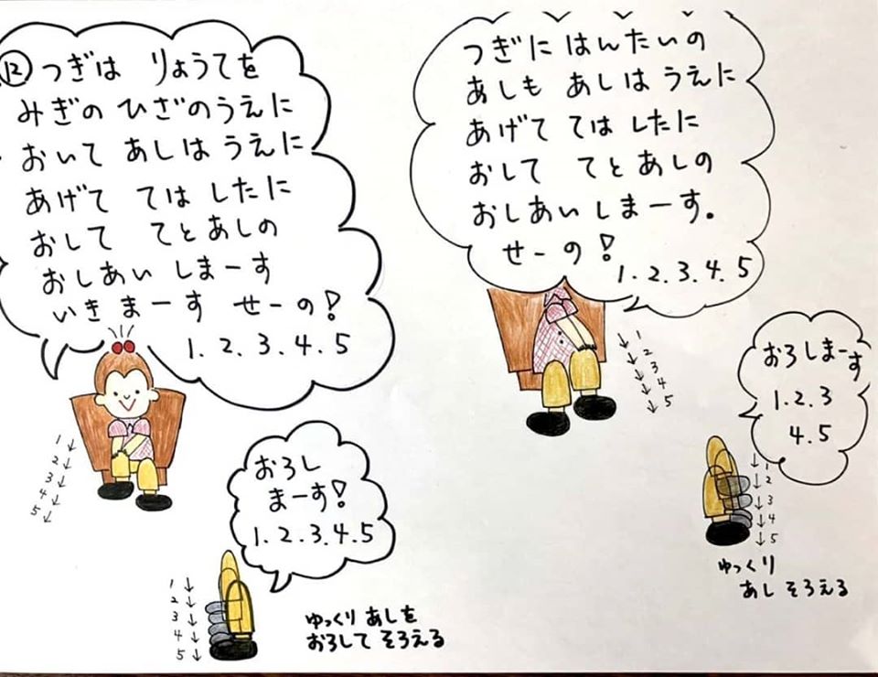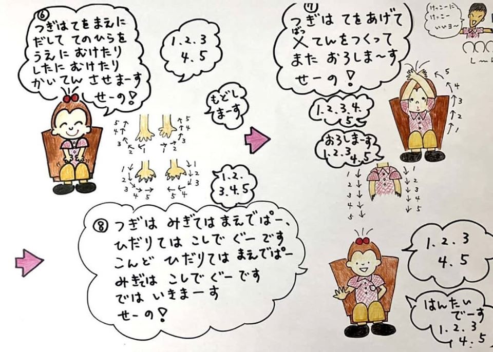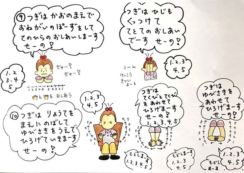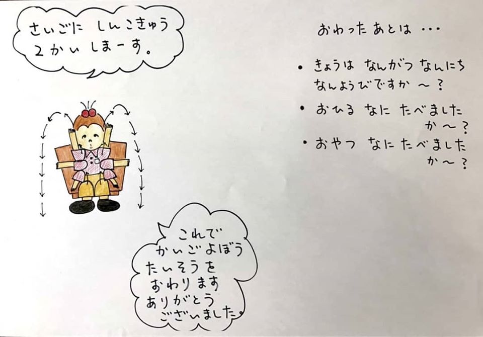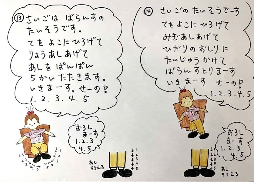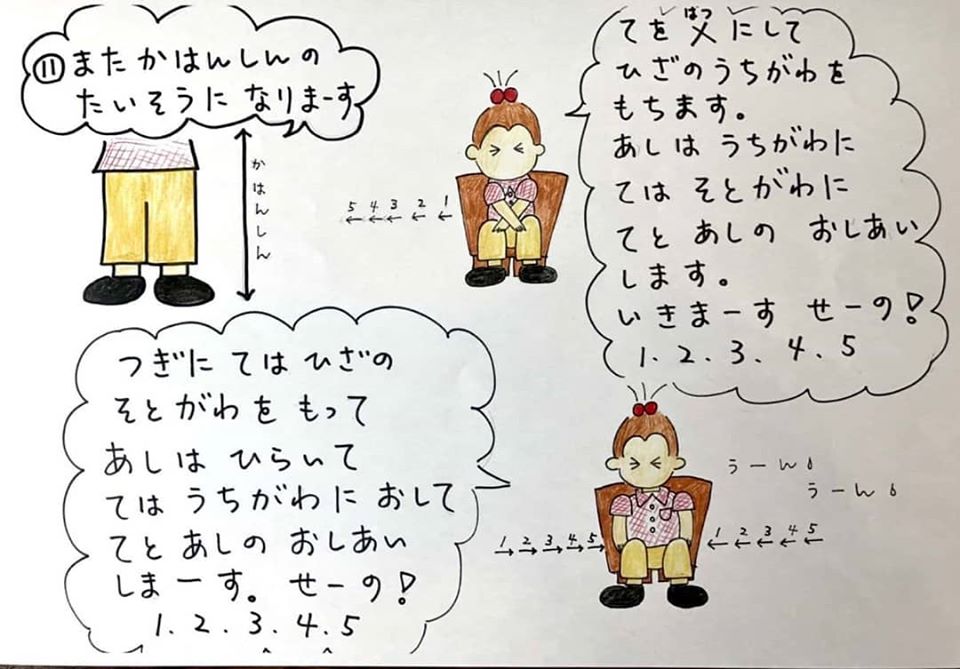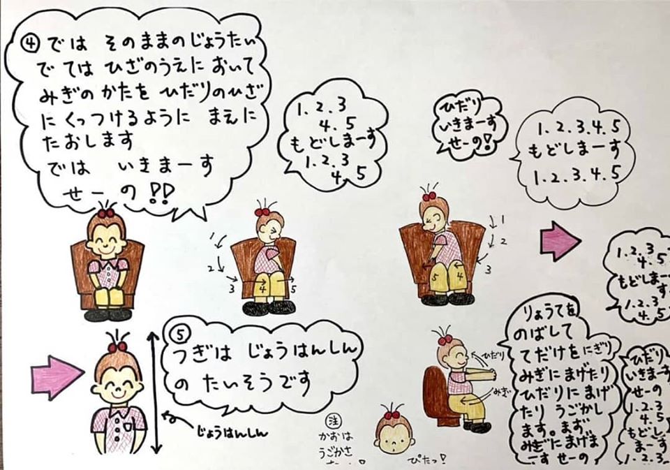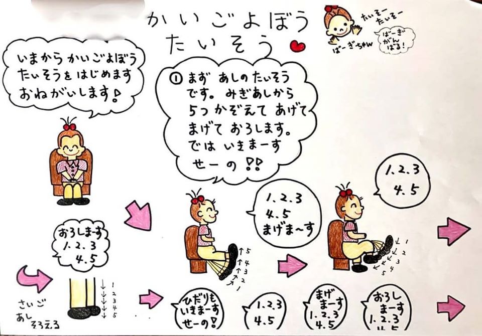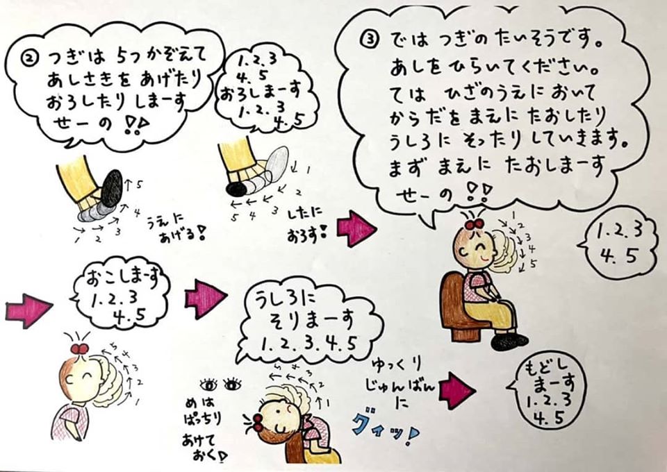 いつもデイサービスで行っている体操をご自宅でもやっていただきたく、イラストにしてみました。