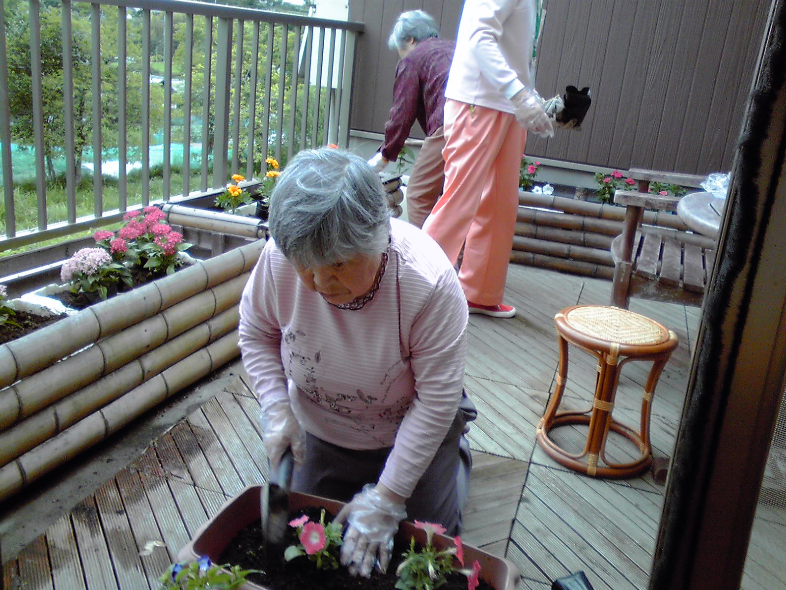 今日、グループホームの花壇にお花を植えました。 きれいなお花が咲きますように・・・^^)